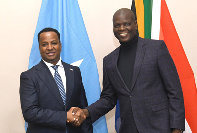As part of his visit to South Africa, Somali Foreign Minister Abdisalam Abdi Ali paid a courtesy call on South Africa’s Minister of International Relations and Cooperation, Ronald Lamola. Minister Lamola extended his congratulations to the Government and people of Somalia on the occasion of their 65th Independence Day, and commended the country for securing a non-permanent seat on the United Nations Security Council for the 2025–2026 term. “We have confidence in Somalia's continued effective representation of the African continent at the United Nations Security Council,” said Lamola. He further reaffirmed South Africa’s support for Somalia’s territorial integrity in accordance with the African Union’s Constitutive Act, and reiterated the importance of ongoing efforts toward peace and security in the country.