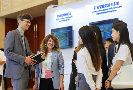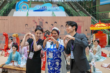 Attendees of the Inter-Civilizational Dialogue among Shanghai Cooperation Organization (SCO) Countries 2025 visit a sculpture exhibition in north China's Tianjin, July 23, 2025. (Xinhua/Li Ran)