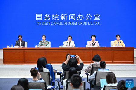The State Council Information Office (SCIO) holds a press conference to release the white paper titled "China's Achievements in Women's Well-Rounded Development in the New Era" in Beijing, capital of China, Sept. 19, 2025. (Xinhua/Li Xin)