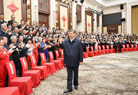 Chinese President Xi Jinping, also general secretary of the Communist Party of China Central Committee and chairman of the Central Military Commission, meets with representatives of cadres who come to work in Xinjiang from other parts of the country in Urumqi, northwest China's Xinjiang Uygur Autonomous Region, Sept. 23, 2025. (Xinhua/Xie Huanchi)