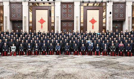 Chinese President Xi Jinping, also general secretary of the Communist Party of China Central Committee and chairman of the Central Military Commission, poses for a group photo while meeting with representatives of local officials at various levels and from various departments in Urumqi, northwest China's Xinjiang Uygur Autonomous Region, Sept. 23, 2025. (Xinhua/Yan Yan)