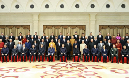 Chinese President Xi Jinping, also general secretary of the Communist Party of China Central Committee and chairman of the Central Military Commission, poses for a group photo while meeting with representatives of patriotic members of the religious circles in Urumqi, northwest China's Xinjiang Uygur Autonomous Region, Sept. 23, 2025. (Xinhua/Ding Lin)
