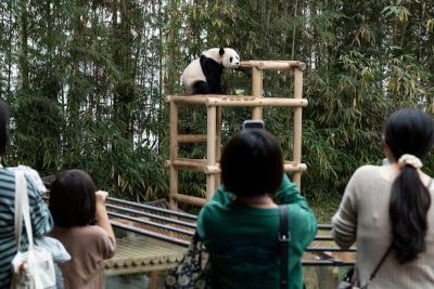 People look at the giant panda Le Bao at Everland Resort in the city of Yongin, South Korea, Sept. 30, 2025. (Photo by Jun Hyosang/Xinhua)
