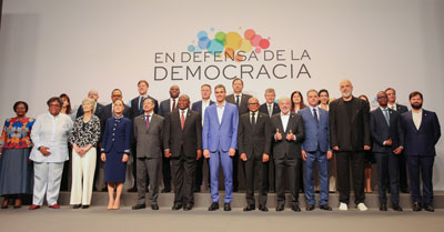 Heads of State and Government pose for a family photo at the fourth meeting of the In Defence of Democracy Initiative at Fira de Barcelona (photo: Jairus Mmutle/GCIS)