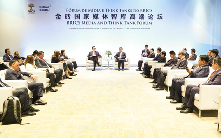 RIO DE JANEIRO, 18 July 2025 (Xinhua) -- Over 250 representatives from nearly 150 media outlets, think tanks, government agencies, and regional organizations across 36 countries gathered here on Wednesday for the BRICS Media and Think Tank Forum, an event focusing on how to advance BRICS cooperation and strengthen solidarity across the Global South.